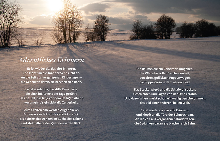 Gemeindemitglied Cilli Kehsler hat natürlich auch in diesem Jahr 2025, jetzt bereits zum dritten Mal, einen «Literarischen Adventskalender» verfasst, den man kostenlos auf der Website https://gedichte-zur-weihnacht.de abonnieren kann. Freuen Sie sich wieder auf besinnliche, neue Texte und Anstösse in der Vorbereitungszeit auf Weihnachten.