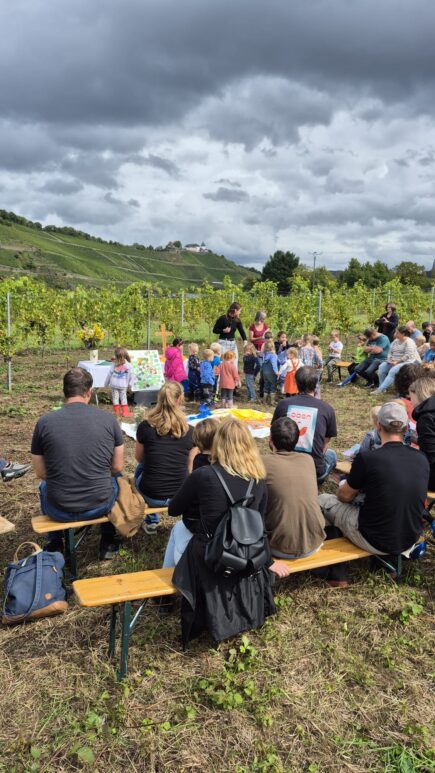 Die Kindertagesstätte St. Marien Pünderich hat am Samstag, den 13.09. bei typischen Spätsommerwetter ihr erstes Traubenlesefest gefeiert. Den Auftakt bildete eine kleine Andacht im Traubengarten, in dem die Kinder voller Begeisterung die reifen Tafeltrauben selbst ernten und pflücken durften.