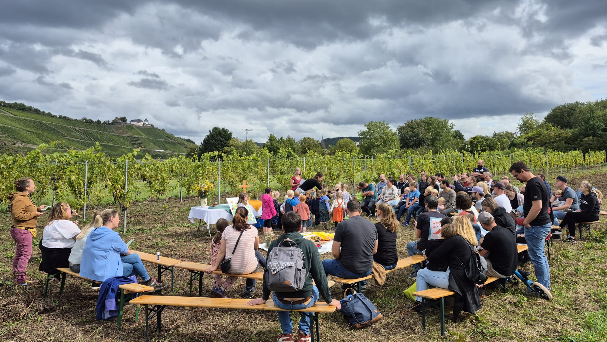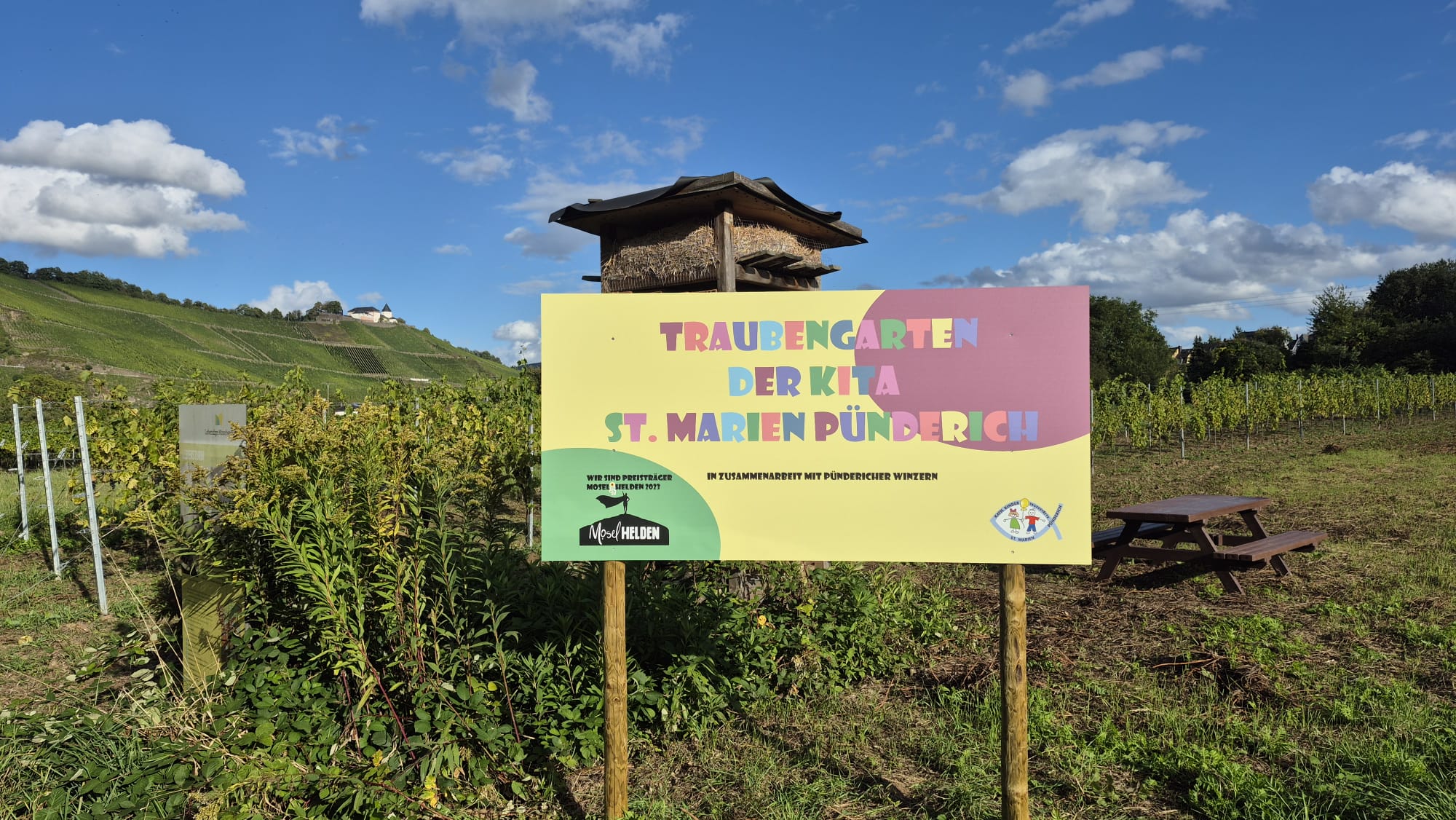 Die Kindertagesstätte St. Marien Pünderich hat am Samstag, den 13.09. bei typischen Spätsommerwetter ihr erstes Traubenlesefest gefeiert. Den Auftakt bildete eine kleine Andacht im Traubengarten, in dem die Kinder voller Begeisterung die reifen Tafeltrauben selbst ernten und pflücken durften.