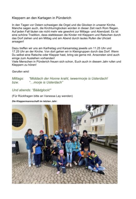 Kommt wieder zum Kleppern, Kinder! von Andreas Boll, am Mittwoch, 25. März 2026 Kleppern_Puenderich_2026 (Druckformat) Was meinen Sie dazu? Schreiben Sie einen Kommentar Antwort abbrechenBeachten Sie bitte, dass Ihr Kommentar nur auf der Website veröffentlicht wird, wenn Sie Ihren vollen Vor- und Nachnamen und eine funktionierende E-Mail-Adresse verwenden. Für direkte Fragen benutzen Sie bitte das Kontaktformular oder die ggf. im Beitrag angegebenen Kontaktdaten.Ihre E-Mail-Adresse wird nicht veröffentlicht. Erforderliche Felder sind mit * markiertKommentar * Name * E-Mail-Adresse *
