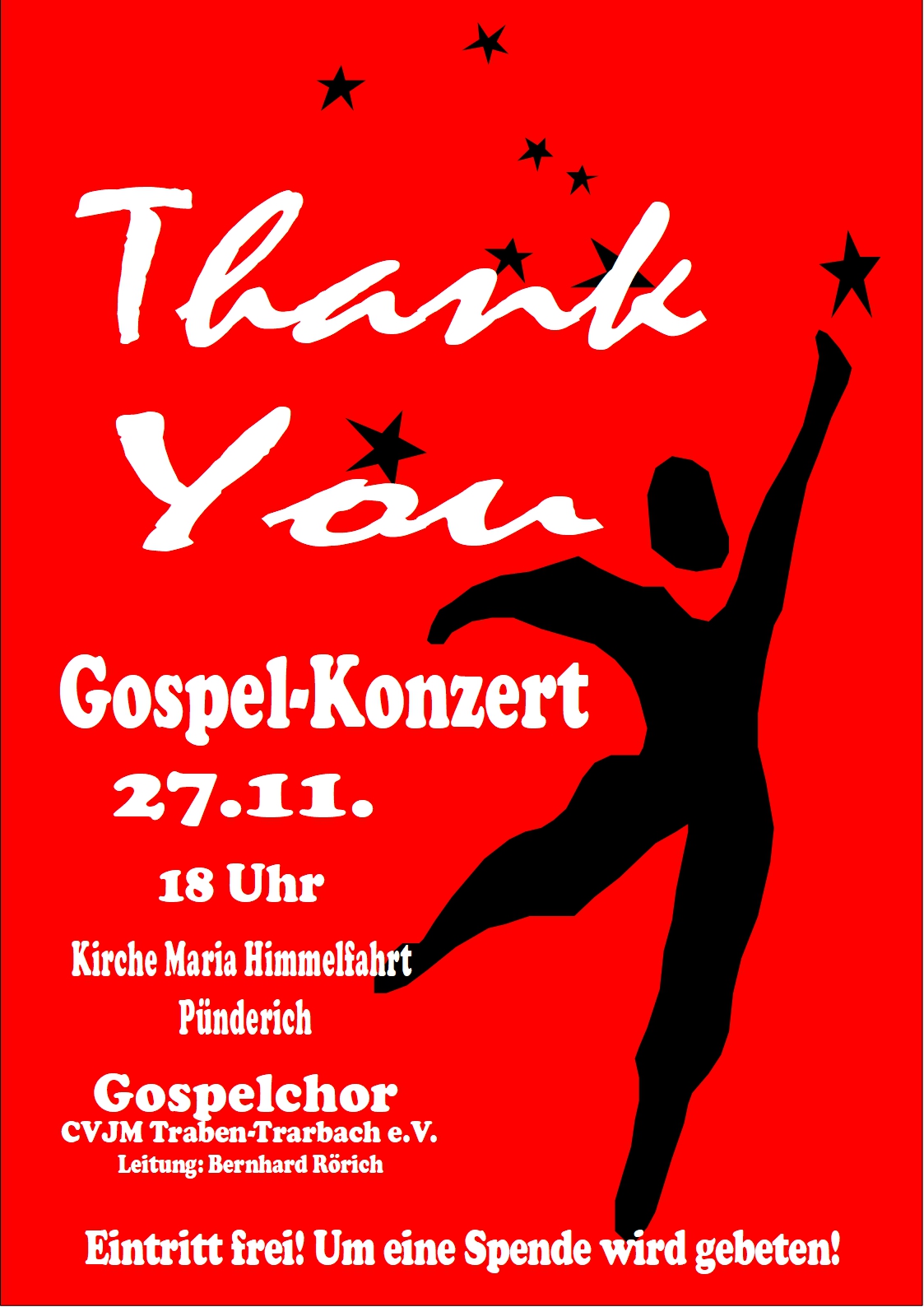 Gospel-Konzert von Gesetzkrämer (plan33), am Dienstag, 18. Oktober 2022 Termin Details Datum: 27. November 2022 18:00 Ort: Kirche Pünderich Was meinen Sie dazu? Schreiben Sie einen Kommentar Antwort abbrechenBeachten Sie bitte, dass Ihr Kommentar nur auf der Website veröffentlicht wird, wenn Sie Ihren vollen Vor- und Nachnamen und eine funktionierende E-Mail-Adresse verwenden. Für direkte Fragen benutzen Sie bitte das Kontaktformular oder die ggf. im Beitrag angegebenen Kontaktdaten.Ihre E-Mail-Adresse wird nicht veröffentlicht. Erforderliche Felder sind mit * markiertKommentar * Name * E-Mail *