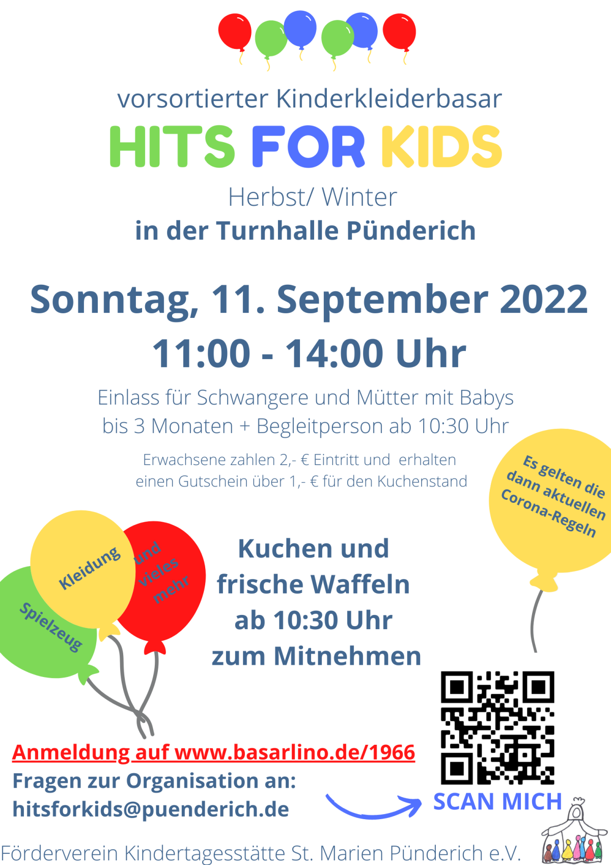 Kinderkleiderbasar „Hits for Kids“ von Gesetzkrämer (plan33), am Montag, 22. August 2022 Termin Details Datum: 11. September 2022 11:00 – 14:00 Was meinen Sie dazu? Schreiben Sie einen Kommentar Antwort abbrechenBeachten Sie bitte, dass Ihr Kommentar nur auf der Website veröffentlicht wird, wenn Sie Ihren vollen Vor- und Nachnamen und eine funktionierende E-Mail-Adresse verwenden. Für direkte Fragen benutzen Sie bitte das Kontaktformular oder die ggf. im Beitrag angegebenen Kontaktdaten.Ihre E-Mail-Adresse wird nicht veröffentlicht. Erforderliche Felder sind mit * markiertKommentar * Name * E-Mail-Adresse *